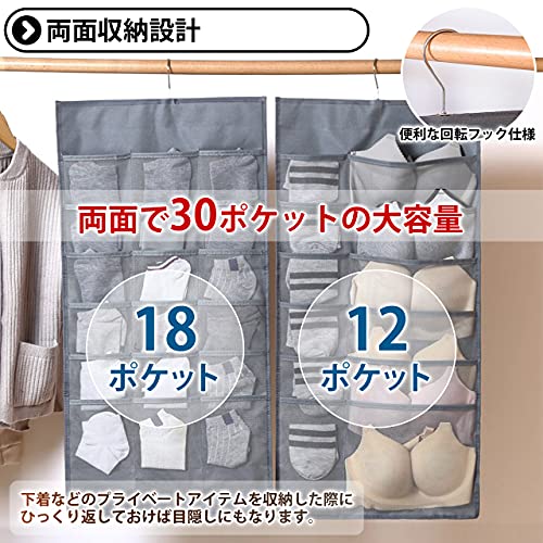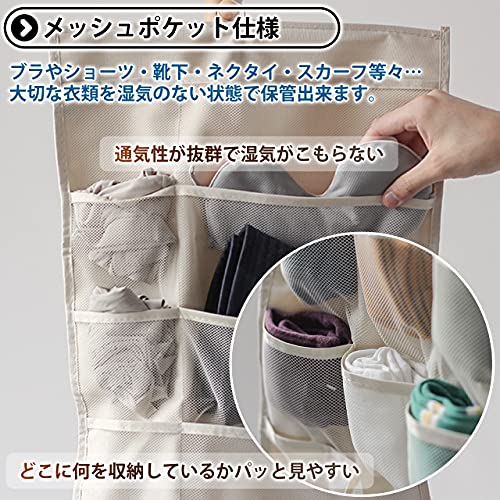 [ラッジョ]吊り下げ収納 ウォールポケット 下着収納 省スペース 両面収納 大容量 靴下 ネクタイ 小物 メッ