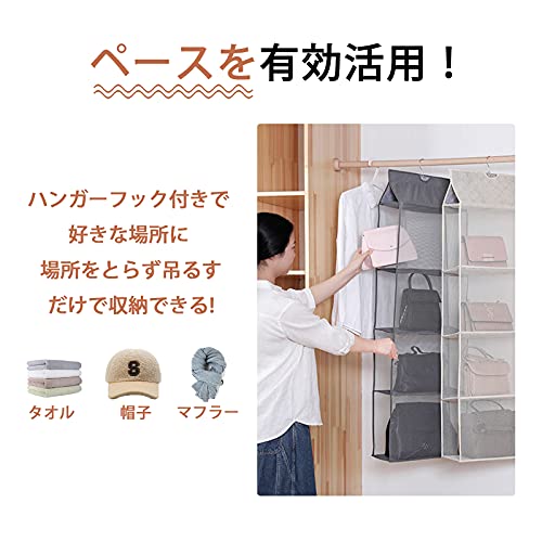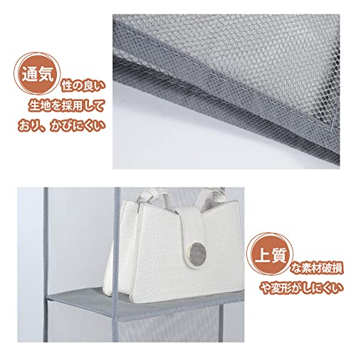 【耐用性や収納便利】品質の良い不織布製なので、通気性も良く、耐久性に優れています。あなたの大切なバッグ収納の悩みを解決します!タオル、帽子、マフラー、手袋、ストール等も収納可能。省スペースですっきり収納出来る吊り下げ式の収納ケースになります。