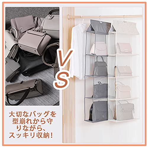 バッグ 収納 吊り下げ収納 クローゼット 収納 吊り下げ 両面収納 壁掛け カバン 収納 ポケット8個収納可能 帽