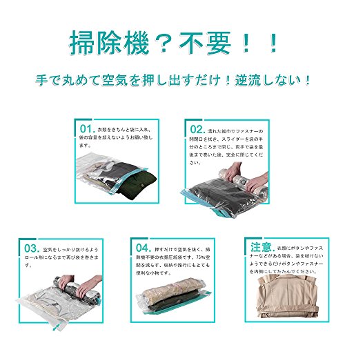 【綺麗に収納】:透明な圧縮袋なので、引っ越し・海外旅行・出張などの時、かさばる服を綺麗に圧縮できます。