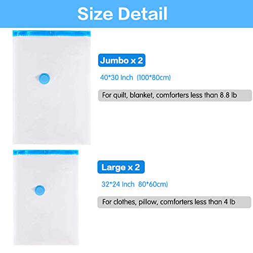 衣類圧縮袋 真空圧縮袋 布団圧縮袋 布団収納袋 4枚セット(100×80cm 2枚+ 80×60cm 2枚) 手動ポンプ付き 防塵防湿