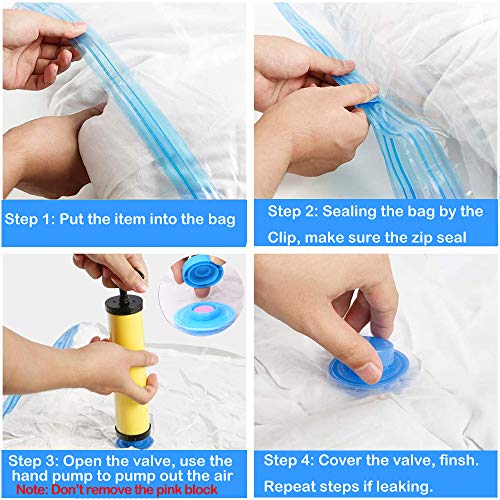 【使用方法簡単】適度なサイズのバッグを選んで、衣類を入れて、スライダーでチャックを完全に閉めて、ご家庭でお使いの掃除機も圧縮でき、付いたポンプも圧縮でき、ご自由に選んでください。
