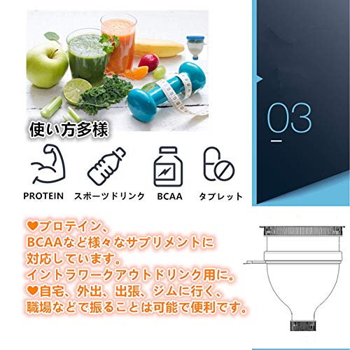 【使い方多様】:プロテイン、BCAAなど様々なサプリメントに対応しています。イントラワークアウトドリンク用に。小さな口は、標準的なペ