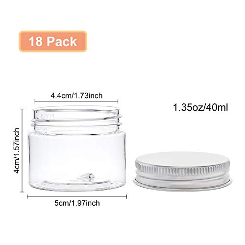 BENECREAT 18個40ml円柱小分けケース アルミ蓋つき プラスチック缶 アクセサリー ビーズ パーツ 詰め替え容器 小