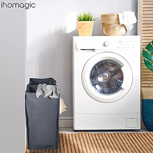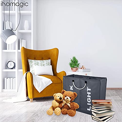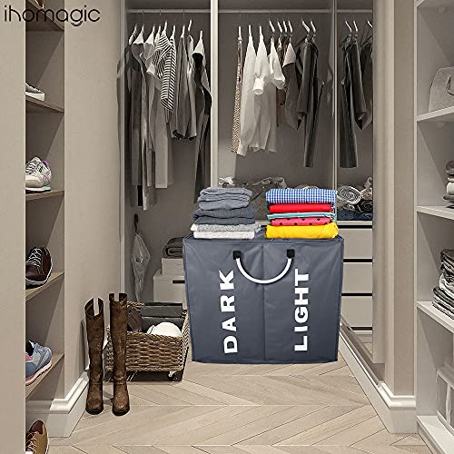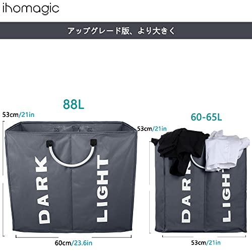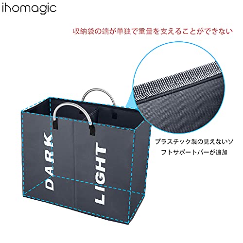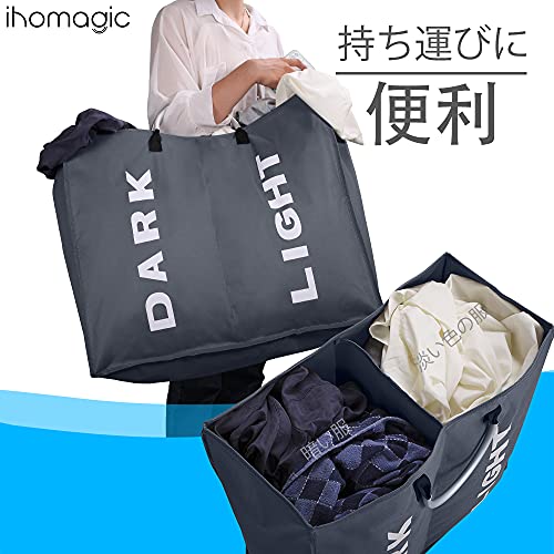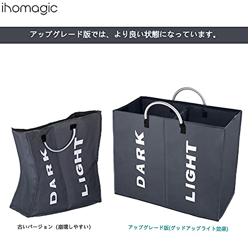 IHOMAGIC洗濯バッグ 取っ手付き 2グリッド ランドリーボックス 折り畳み式 洗濯かご二段 洗濯収納ボックス 洗濯