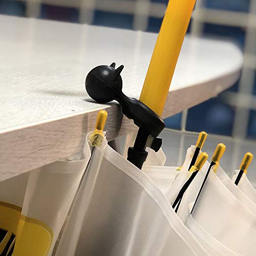 使い方:長傘および折りたたみ傘のロッドにつけて、簡単にテーブルや椅子の背面や棚に傘を掛けます。