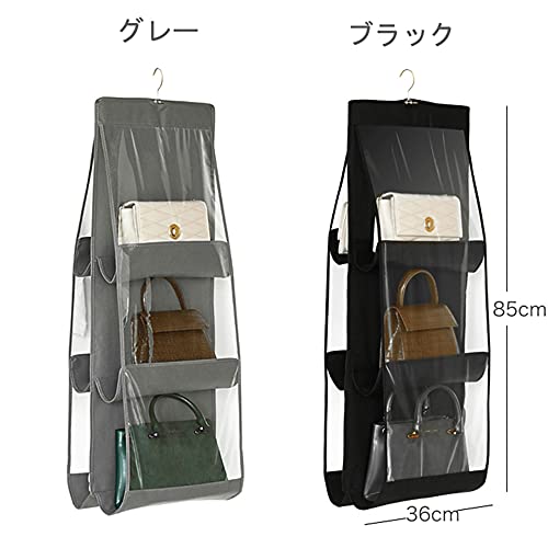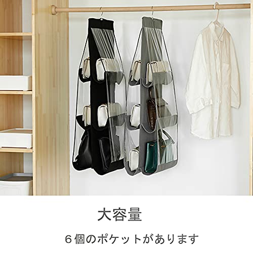 AISIT バッグ収納 収納ボックス 両面収納 壁掛け ポケット6個 (ブラック)