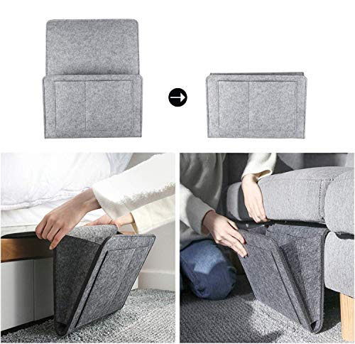 【スッキリ収納】:省スペースでたくさん収納スペースを増やせるベッドサイド収納ポケットです。本や雑誌、漫画やスマホなどベッドサイドにあると嬉しいアイテムをまとめて整理収納できます。メガネ、新聞、携帯も収納できてサイド多機能ポケットです。