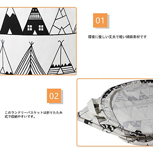 DUOFIRE ランドリーバスケット 洗濯物用かご 綿麻生地 撥水加工 大容量布製雑貨収納ボックス 折り畳み式収納ボ