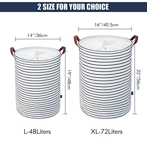 DOKEHOM 22-Inches 厚い ランドリーバスケット 収納ボックス バッグ 洗濯かご 防塵蓋付き 巾着 取っ手付き 折り畳
