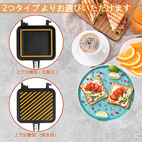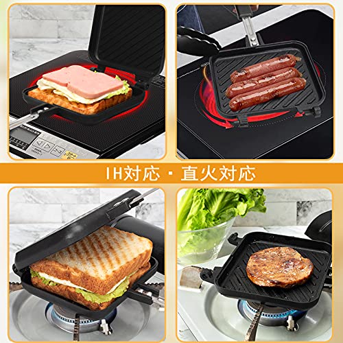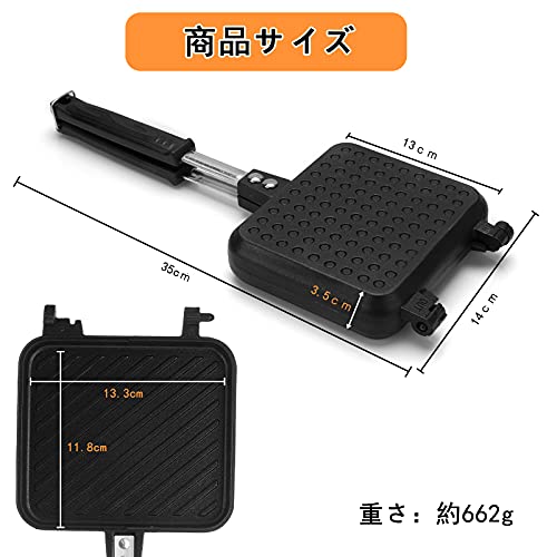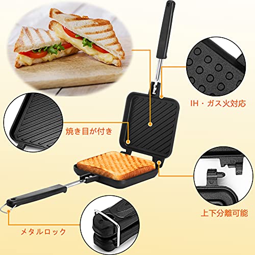 ?【IH対応&直火ガス】:IHクッキングヒーターにも直火(ガス火)にも対応可能な最新のホットサンド調理具です。軽量でコンパクトで、長期間使っても手が疲れません。持ち運びも便利で、リュックサックに入れても負担にならないです。毎日のお料理はもちろん、アウトドア、キャンプや登山などの場合、コンロに置いてもガタつかない安定感があります。お好みの食材を挟んで、色々な料理を楽しめます。