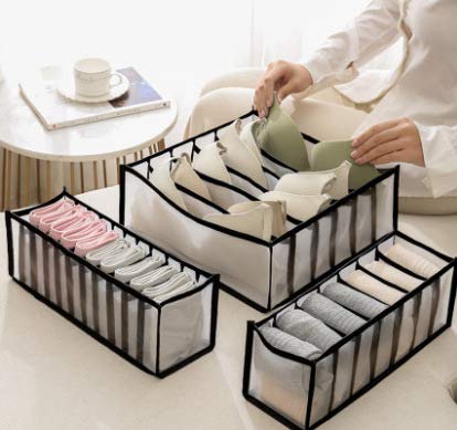 【収納まとめ整理】:化粧台、引き出し、ワードローブ、キャビネットなど、お好きな場所にこれらの織物収納かごを置くだけで、下着、靴下、ブラ、タイツ、ゲートル、アクセサリーなどを収納して整理できます,引き出しとクローゼットに入れても最適です。効率に整理できる収納ボックスです。