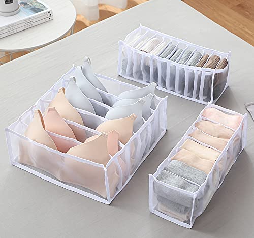 【収納まとめ整理】:化粧台、引き出し、ワードローブ、キャビネットなど、お好きな場所にこれらの織物収納かごを置くだけで、下着、靴下、ブラ、タイツ、ゲートル、アクセサリーなどを収納して整理できます,引き出しとクローゼットに入れても最適です。効率に整理できる収納ボックスです。