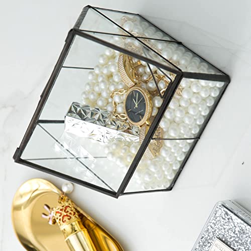 【安定の品質】ジュエリーボックスは高品質な合金とガラス製、精緻な加工、良い素材を使用し、ガラスボックスの耐久性を確保します。透明度が高いガラス、一目でジュエリーのコレクションを鑑賞することができます。