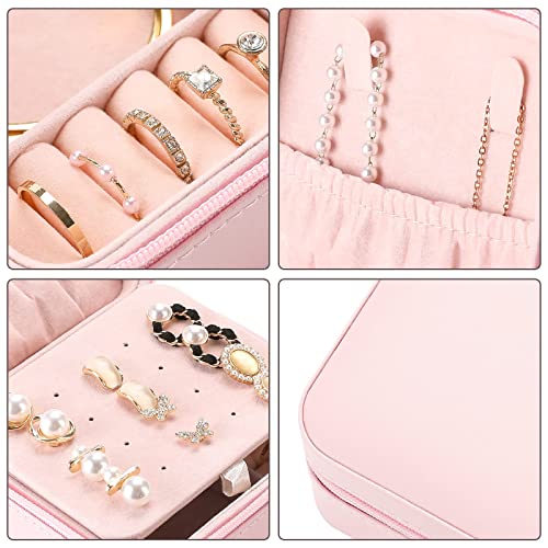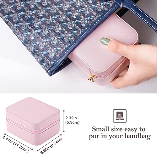 Lolalet 小型ジュエリーボックス 2層 イヤリング 指輪収納 携帯便利 出張 旅行用 -ピンク