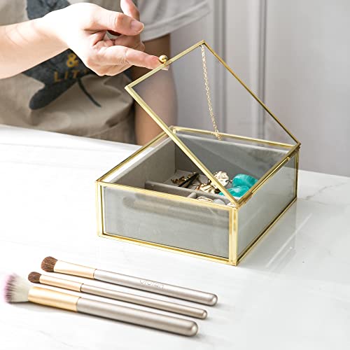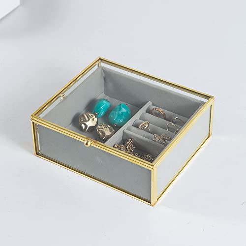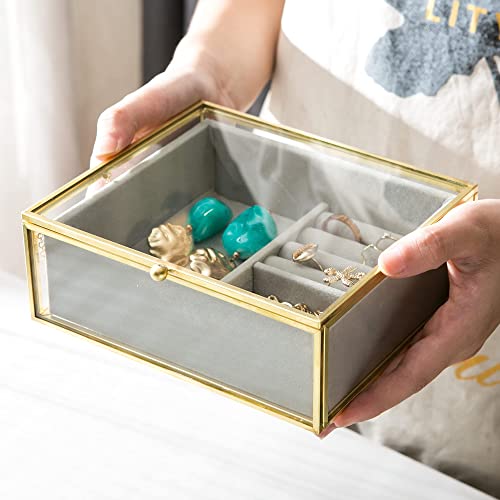 ジュエリーボックスは高品質な合金とガラス製、精緻な加工、良い素材を使用し、ガラスボックスの耐久性を確保します。透明度が高いガラス、透明感純粋な気持ちをイメージしたり綺麗なガラスケースです。