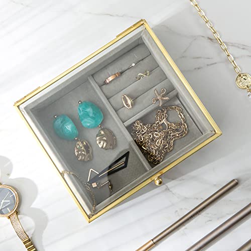高品質のガラスの箱、スタイリッシュなデザイン、柔らかいベルベットの裏地、エレガントな質感、ソフトな肌触りは、ジュエリーケースを女の子や女性への素晴らしい贈り物にします。