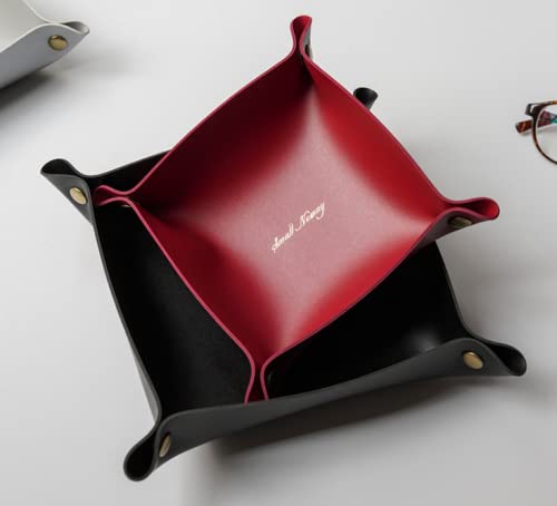 【異なるサイズの2個セット】17cm×17cm×4cmと13cm×13cm×4cm スマホを置いてもまだ置ける余裕もあるサイズで、鍵、腕時計、アクセサリー、ペン、メガネ、小銭など入れも一緒に置いておくことができます。身の回りの小物をひとまとめにできるので、物の定位置を決めて散らかりがちな机周りをスッキリすることができ、一目瞭然で、忙しい朝に探す手間がはぶけます。