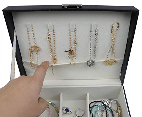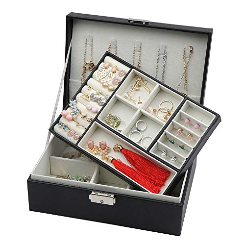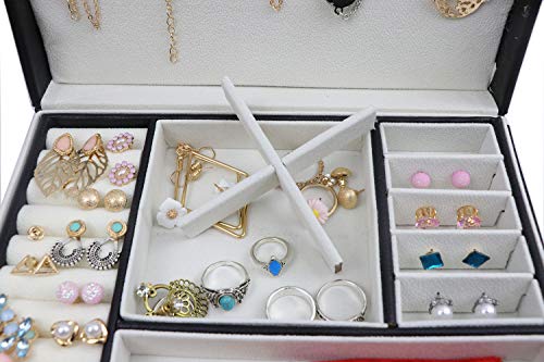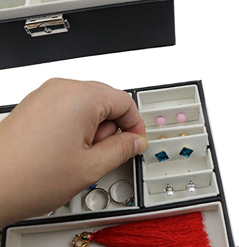 【収納力バツグン】:2段構造のコンパクト設計は、ジュエリー・アクセサリー(ネックレス・指輪・ブレスレット・ピアス・フープピアス・イヤリング・ペンダントトップ・ヘアアクセサリー・腕時計・サングラス)等が一つまとまってしっかり収納可能です。