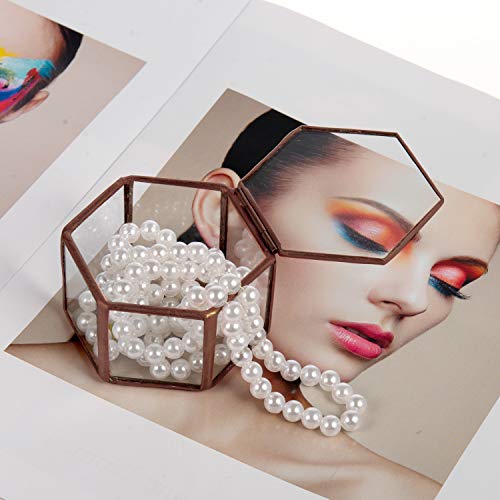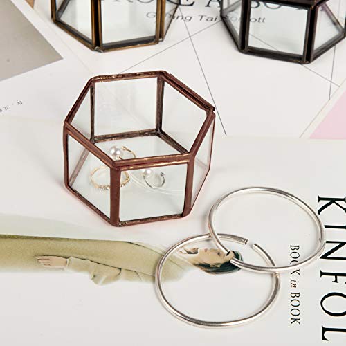 Feyarl ジュエリーボックス ジュエリー入れ 宝石箱 ジュエリー収納 ガラスボックス リングピロー 7.5cm 六角形