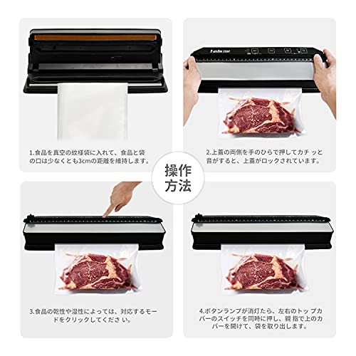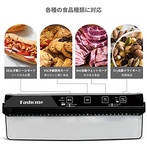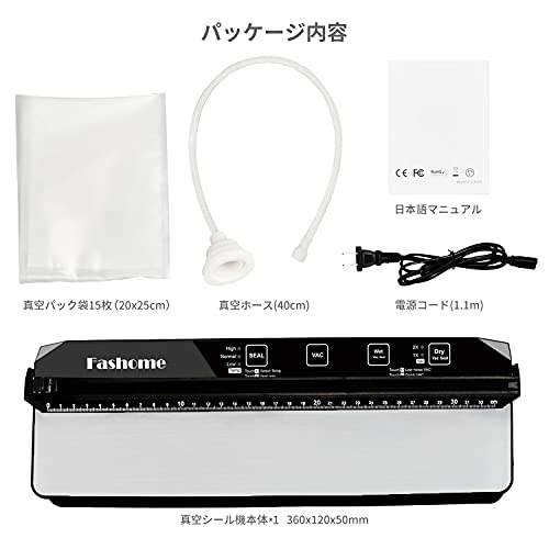 | 商品名 | Fashome 真空パック機 フードセーバー 乾湿対応 フードシーラー 60kpa吸引力 32cm 真空パック器 真空パック袋15枚 |