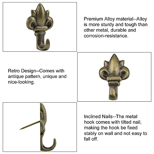 ヴィンテージ パターン: ブロンズ塗装とヨーロッパの花模様が付属しています。小さなプッシュ フックはレトロで美しいです。壁掛け用の実用的なツールであるだけでなく、壁をうまく飾ることもできます。