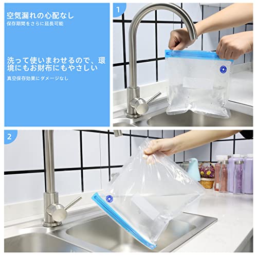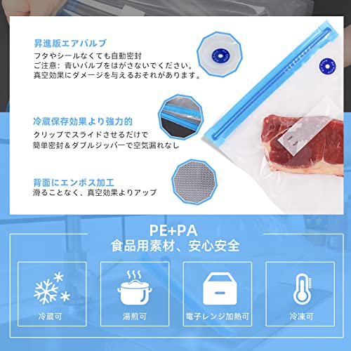 真空パック 袋 10枚 手動ポンプ付 密封用スライダー4枚付 PA&PE材質 二重チャック 新鮮度長持ち 抗菌袋 圧