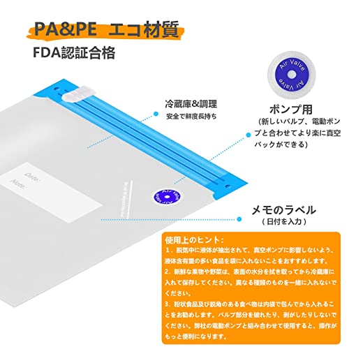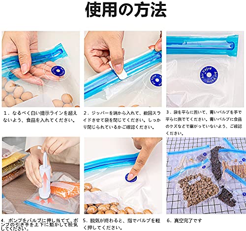| 商品名 | 真空パック 袋 10枚 手動ポンプ付 密封用スライダー4枚付 PA&PE材質 二重チャック 新鮮度長持ち 抗菌袋 圧 |