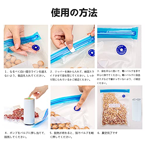 ?【強い密閉性】専用密封袋が作った真空状態により、食品の腐敗、酸化、変質などを防げ、食品の保存に最大限の便利さをご提供できます。本製品は、食品の新鮮度を3~5倍に延長し、食物の元の味と色を保留することができます。新しいバルブ、電動ポンプと合わせてより楽に真空パックができる。ご注意:バルブ部分を破れたり、剥がしたりしないでください。真空できない恐れがあります。