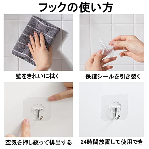| 商品名 | 壁掛けフック 透明フック 粘着フック 強力フック 壁フック 15枚セット 耐荷重20KG 傷つけない 貼り付け跡なし |