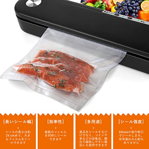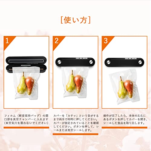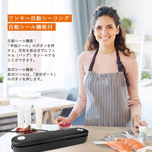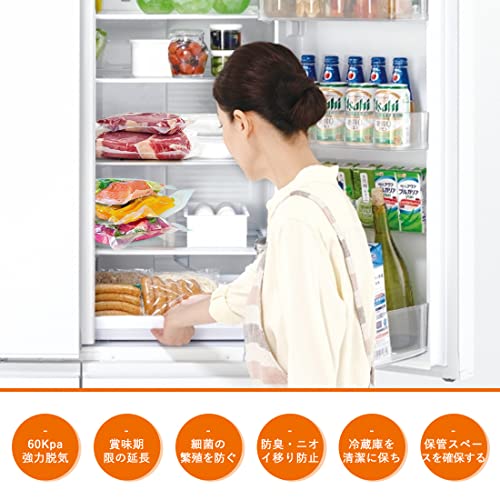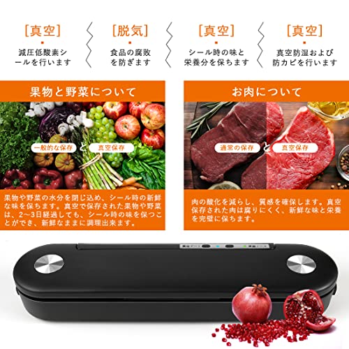 ?【鮮度保ち】真空パック器でしっかりと食品を密閉できているため、空気を抜き、湿気、細菌、ほこりなど隔離させ、食品の鮮度や栄養を保つことができ、食品の腐敗?酸化?変質を減らして、ニオイ移りにも防止できます。真空で保存された果物や野菜は、2~3日経過しても、シ一ル時の味を保つことができ、新鮮なままに調理出来ます。肉の酸化を減らし、質感を確保します。真空保存された肉は腐りにくく、新鮮な味と栄養を完璧に保ちます。