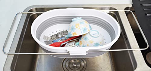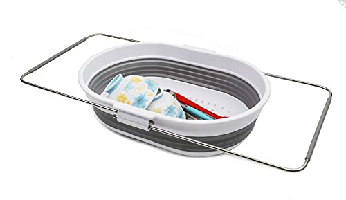 SAMMART 引き込み式ハンドル付き, 楕円形キッチン折りたたみフィルター (White/Grey)