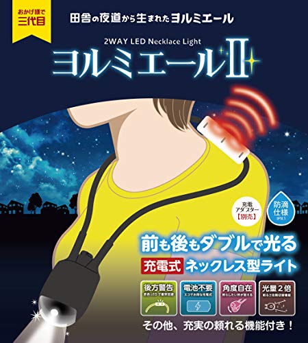 毎日、田舎の夜道を歩いた経験から生まれたヨルミエール。軽トラにひかれそうになったからひらめいた!首元の襟足ハザードLEDが、後方から迫るクルマや自転車にあなたの存在をアピール!赤い点滅が夜でもハッキリ見える!自然と目に入るから、自然と避けてくれる。