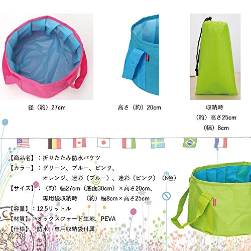 Hush & Vane 折りたたみバケツ 折り畳み バケツ アウトドア キャンプ バーベキュー 水汲み (迷彩(ブルー))