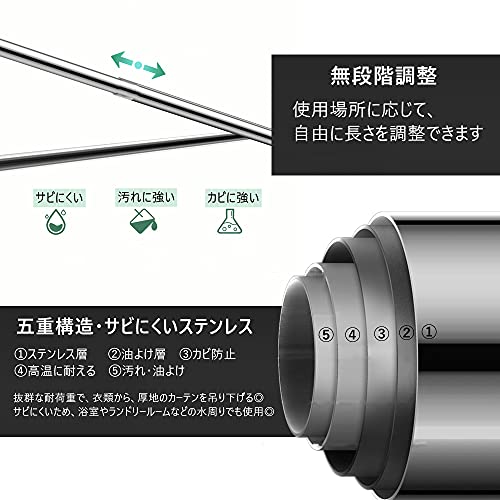 【優れた荷重能力】高品質な201ステンレス素材で製造されたつっぱり棒は強い荷重(最大15kg)に耐
