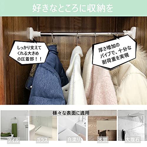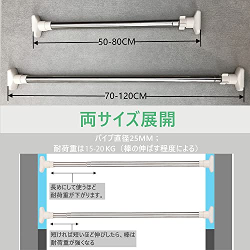 QH7突っ張り棒取付範囲50-80cm 強力 つっぱり棒 伸縮棒 強負荷 滑り止め クローゼットボール カーテンレール 押