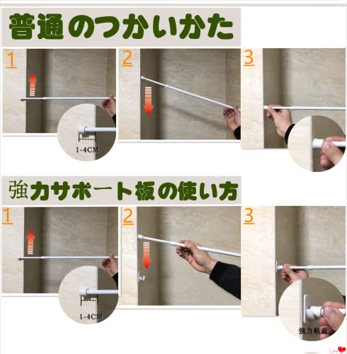 【贈:補強板】この突っ張り棒を広めるために、つっぱり棒を買ったら、突っ張り棒強力サポート板6個が追加されます、これからつっぱり棒が落ちるのことを心配しないです、値段もとても安いです。ご注意:両面ゴムは、タイル、ガラス、大理石、金属、ツルツルする木製表面などの硬い表面にのみ適用され、石膏、セメント、壁紙、粉壁などの表面には適用されません