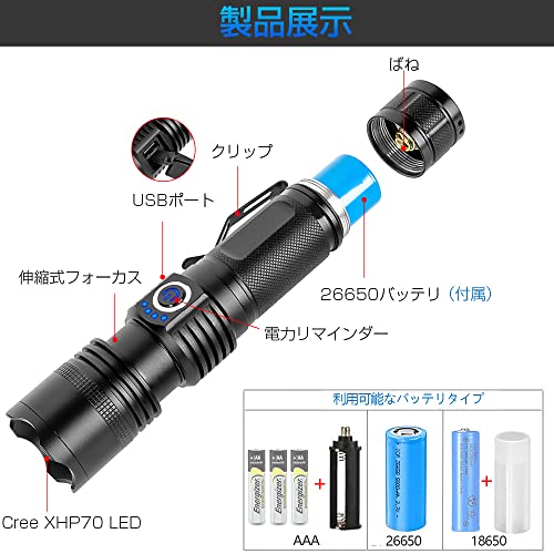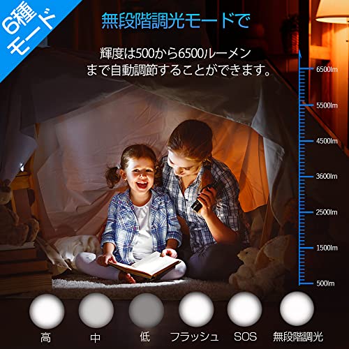 (無段階調光の進化版)高輝度懐中電灯、XHP70の進化版、6500ルーメンと高層のを独占的に 所有しています。 最新のノーセグメントオーダー調光タイプで、合いさはロープーメンから高ルーメンに続きに?成功、オンラインの5モードより正正に灯??まき。 懐中電灯する 機会、懐中電灯灯見たり、暗光灯して不便が回避します。