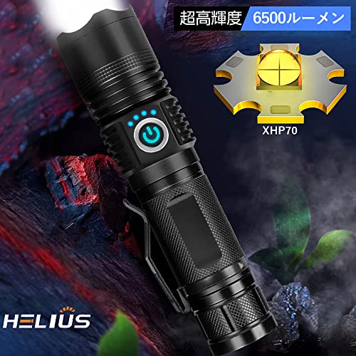(2022最新無段階調光)Helius 懐中電灯 led 強力 軍用 最強 フラッシュ ライト 6500ルーメン 超高輝度 ペンライト