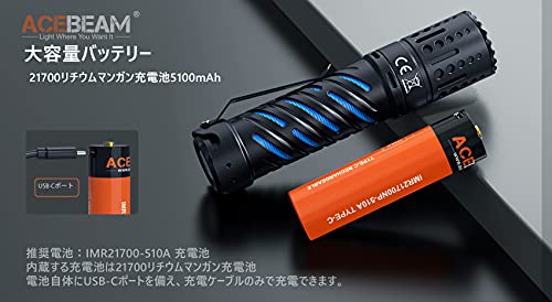 | 商品名 | ACEBEAM E70-AL 充電式EDCフラッシュライト 最大4600ルーメン 充電式懐中電灯 4段階切替+ストロボ 充電式フラッシュ |