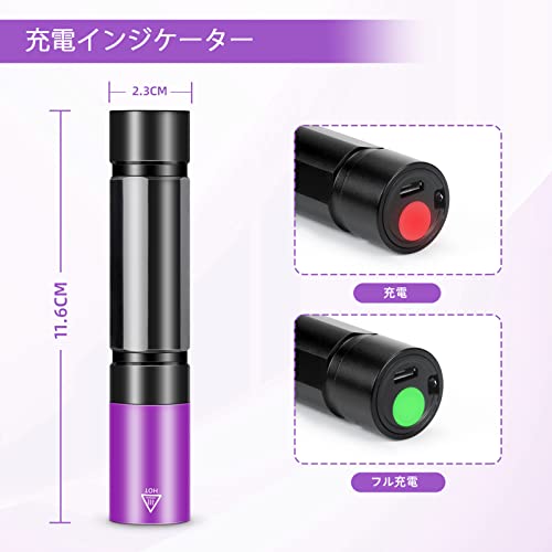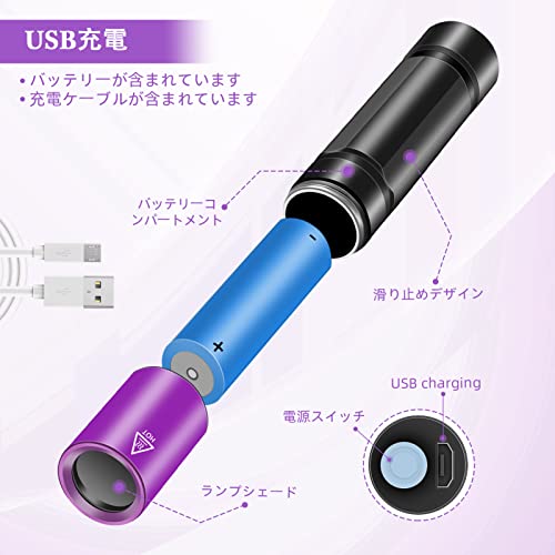 UVライト UV365nm 紫外線 ライト ハイパワーブラックライト 5W UV硬化ライト ペット尿検出用 USB充電式 ブラックラ
