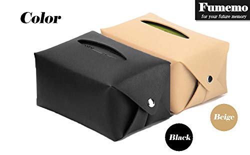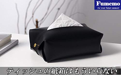 Fumemo ティッシュ ケース カバー 収納 箱 卓上 ボックス おしゃれ インテリア 革 皮 合皮 PU レザー (ブラック)