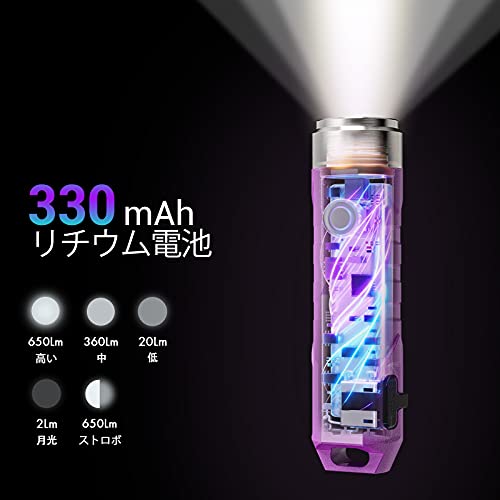 RovyVon Aurora A1x 充電式LEDキーホルダー懐中電灯、650ルーメンXP-G3超高輝度、EDCポケットサイズ、USB充電、防水、