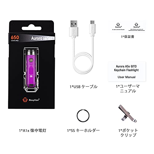 | 商品名 | RovyVon Aurora A1x 充電式LEDキーホルダー懐中電灯、650ルーメンXP-G3超高輝度、EDCポケットサイズ、USB充電、防水、 |