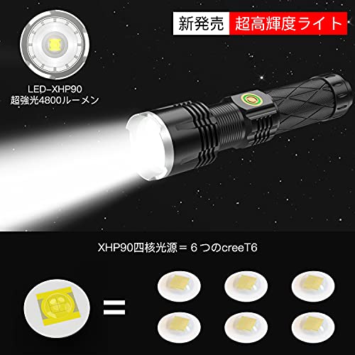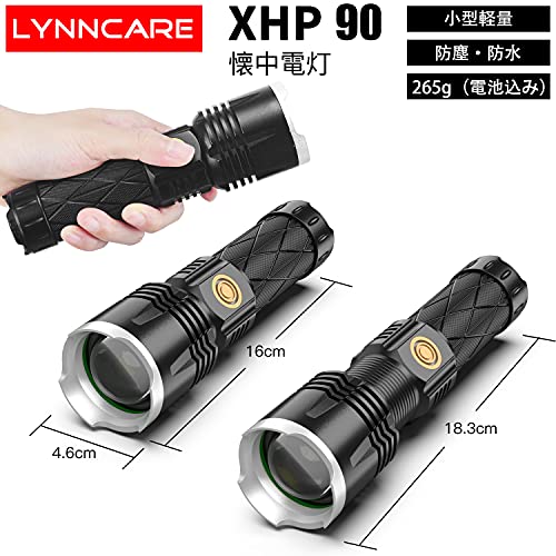 懐中電灯 LED LYNNCARE 超高輝度 4800ルーメン XHP90 USB充電式 5モード調光 ズーム式 防災 停電対策 ハンディライト