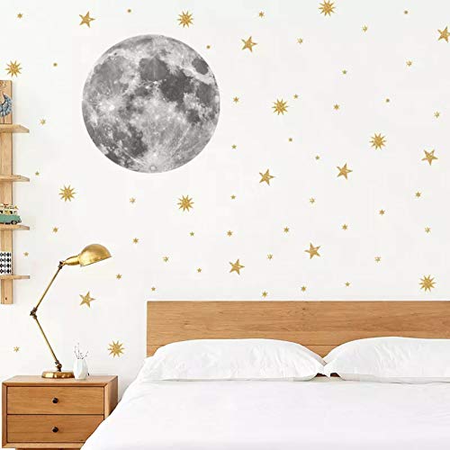 灰色の月の壁のステッカーキッズルームリビングルームの壁の装飾黄金の星ビニールデカールプリント壁紙家