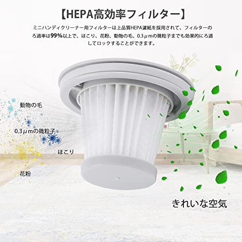 【HEPA高効率フィルター】ミニハンディクリーナー用フィルターは上品質HEPA濾紙を採用されて、フィルターのろ過率は99%以上で、花粉、動物の毛、0.3μmの微粒子までも効果的にろ過してロックすることができます。