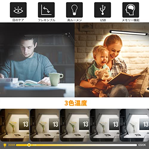 デスクライト LED 電気スタンド 卓上ライトスタンドライト目に優しい 省エネ,クランプ付き電気スタンド,USB