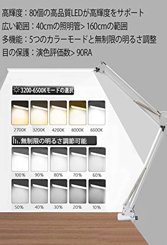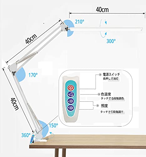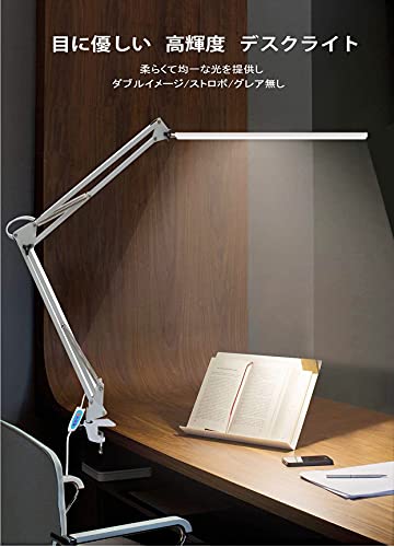 デスクライトLED 目に優しい 電気スタンド 1100lm 高輝度デスクランプ 多機能360°回転アームライト 平面発光11W