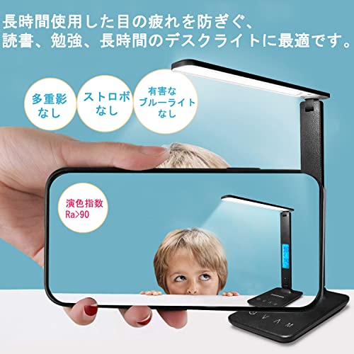 【目に優しいデスクライト】デスクライトは高性能LEDコンポーネントを採用し、有害なブルーライトなし、多重影なし、ストロボなし、均一な光が広がります。演色指数はRa90になり、演色性が高いほど物事本来のカラーを復元できます。長時間使用した目